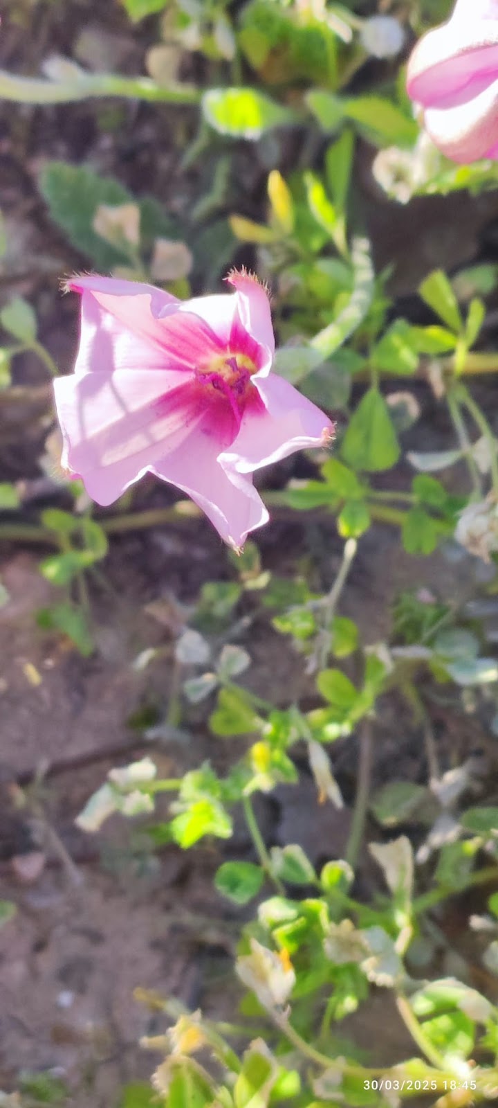 Todos lo sabemos la CAMPANILLA ROSA es un hierbajo perenne que tiene vocación de trepador pero el que ayer me llamó la atención, más que tener vocación de alpinista, lo que manifestaba era vocación de mera rastrera y, no precisamente para minusvalorarla describiéndola como algo negativo, malo, sino como tapizante de un ámbito eminentemente malo cual era, como te he dicho antes, el espacio que va entre el alquitrán de la calle y el campo abierto, lo que pudiera haber sido, porque vocación tenía de ello, una acera pero, es que no existía tal acera.